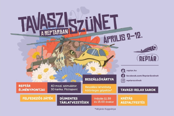Április 2–12. között tartalmas és élményekben gazdag programokkal várja a családokat és az érdeklődőket a RepTár Szolnoki Repülőmúzeum, valamint a Várkapu Szolnoki Vártörténeti Látogatóközpont. Tavaszi szünet a RepTárban A RepTár a megszokott népszerű élményelemek – Pilótapont, 4D Mozi, MiG–29 szimulátor…