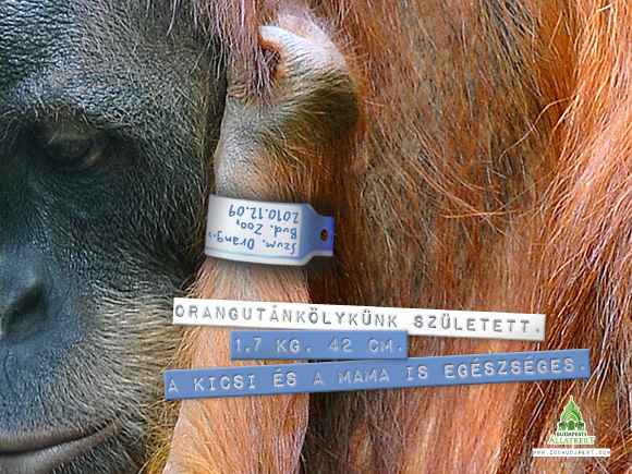 A most született kölyök világra jövetelére december 9-én csütörtökön, 15 óra 45 perckor került sor. Menginek, a 14 esztendős, budapesti születésű anyaállatnak ez az első kölyke, de szemmel láthatóan nem okoz gondot neki az utód gondozása, felnevelése. Mi több, annyira ölelgeti és védelmezi, hogy jelenleg nemcsak a látogatók, hanem a munkatársaink is alig-alig láthatnak valamit a rendszerint „anyai takarásban” lévő apróságból. Az állatgondozóknak azért sikerült alaposabban is megfigyelni az állatot, és ennek alapján úgy tűnik, hogy hím ivarú kölyökről van szó. Nevet azonban eddig még nem kapott. Ahogyan az Állatkert más állatait, természetesen az újszülött orangutánt is örökbe lehet fogadni jelképes