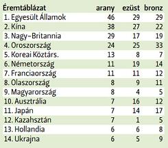 Sportolóink az utolsó napon ugyan nem nyertek érmet, de a londoni olimpián így is remekül szerepeltek, a pekingi bukás után 17 dobogós helyezésükkel 1992 után ismét az első tíz közé kerültek az éremtáblázaton.