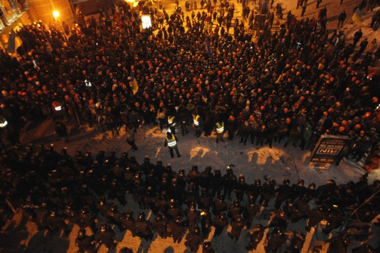 Éjjel a belügyi egységek elkezdték kiszorítani az Ukrajna európai integrációjáért és hatalomváltásért tüntetőket a Függetlenség teréről. Ezután délelőtt kísérletet tettek arra, hogy rohammal behatoljanak a demonstrálók által elfoglalt városházára. A roham hírére mintegy 25 ezres tömeg gyűlt össze a téren és a Hrescsatik nevű főutcán, ahol a városi adminisztráció épülete áll.