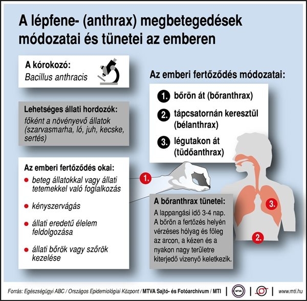 A lépfene- (anthrax) megbetegedések módozatai és tünetei az emberen;