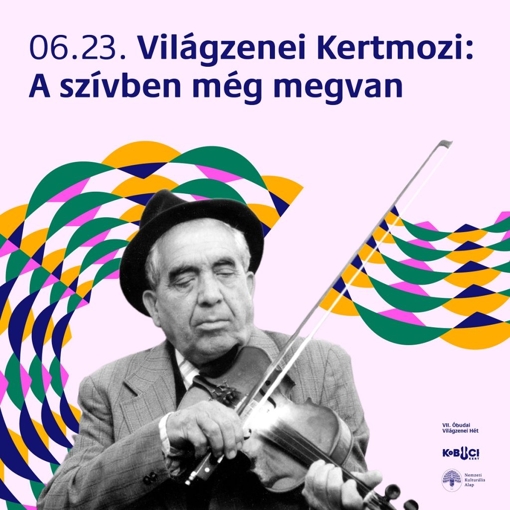 A világzenei eseménysorozat ingyenes kertmozival indul június 23-án 20 órakor, ahol Szomjas György és Halmos Béla egyik közös alkotását, a Szívben még megvan című dokumentumfilmjét vetítik. A portréfilm Zerkula Jánosra, a nagyszerű gyimesi csángó cigányprímására, a klasszikus népzene egyik utolsó képviselőjére emlékezik. A vak muzsikus egy ötödik (rezonáns) húrral felszerelt hegedűn játszott, hozzá énekelt, felesége, Fikó Regina ütőgardonon kísérte. A különleges hangzású, archaikus gyimesi zene és táncok bemutatása mellett a szuggesztív film a Gyimes-völgy táji szépségét és az ott élő emberek életkörülményeit Zerkula történelmi és néprajzi szempontból is különleges élettörténetén keresztül mutatja be.