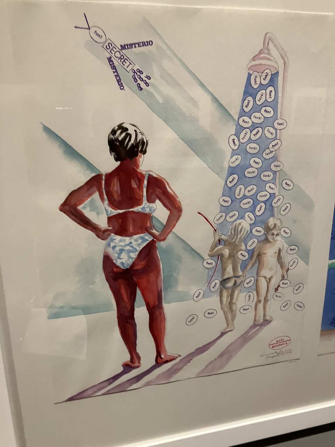 Néhány lényeges képet is sikerült lefotóznunk és itt közzéteszünk, ahogy Toulouse Lautrec akvarelljét, mely egy páholyban ülő koncerten lévő párt ábrázol, akik szinte tapsolnak ennek a korszellemnek, azaz a huszadik századnak. Számunkra ez a Perneczky és a Toulouse Lautrec munka volt a legmegkapóbb, ehhez már csak Orwell könyve hiányzik, vagy felolvasóest a tárlaton az 1984-ből, ahhoz, hogy teljes legyen a kritikai megalapozottság, és a hangulat fokozottan fullasztóvá váljék.