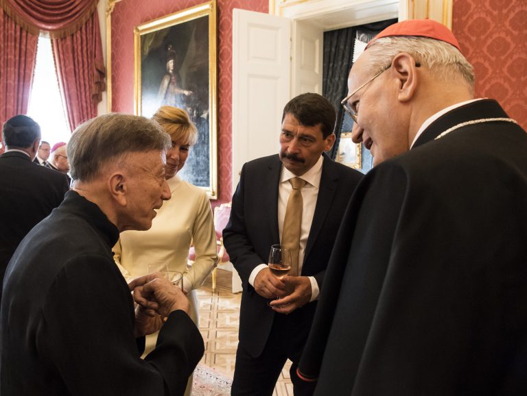 Áder János köztársasági elnök Erdő Péter bíborosnak és Vásáry Tamás zongoraművésznek adta át a Magyar Szent István Rend díjat vasárnap,…
